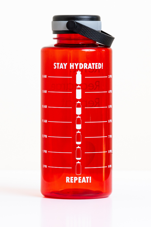 This popular Motivational Hydration bottle returns with an updated look and extra-large capacity, designed to keep hydration at the top of mind throughout the day. Time-marked measurements provide reminders for when to drink, refill and repeat, while the EZ-grip handle makes it easy to take on the go. Durable, BPA-free construction won’t retain odors or flavors and is dishwasher safe.