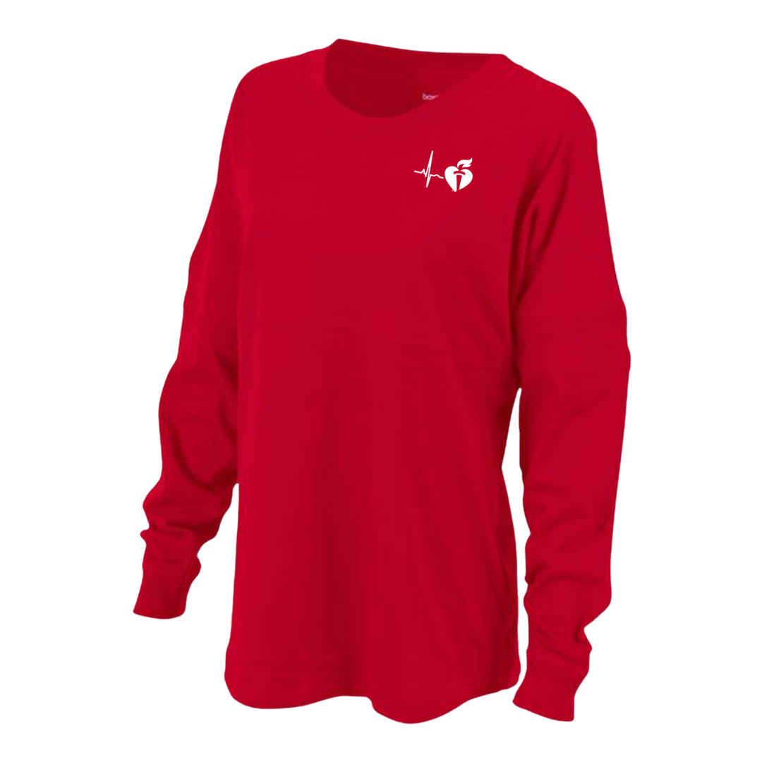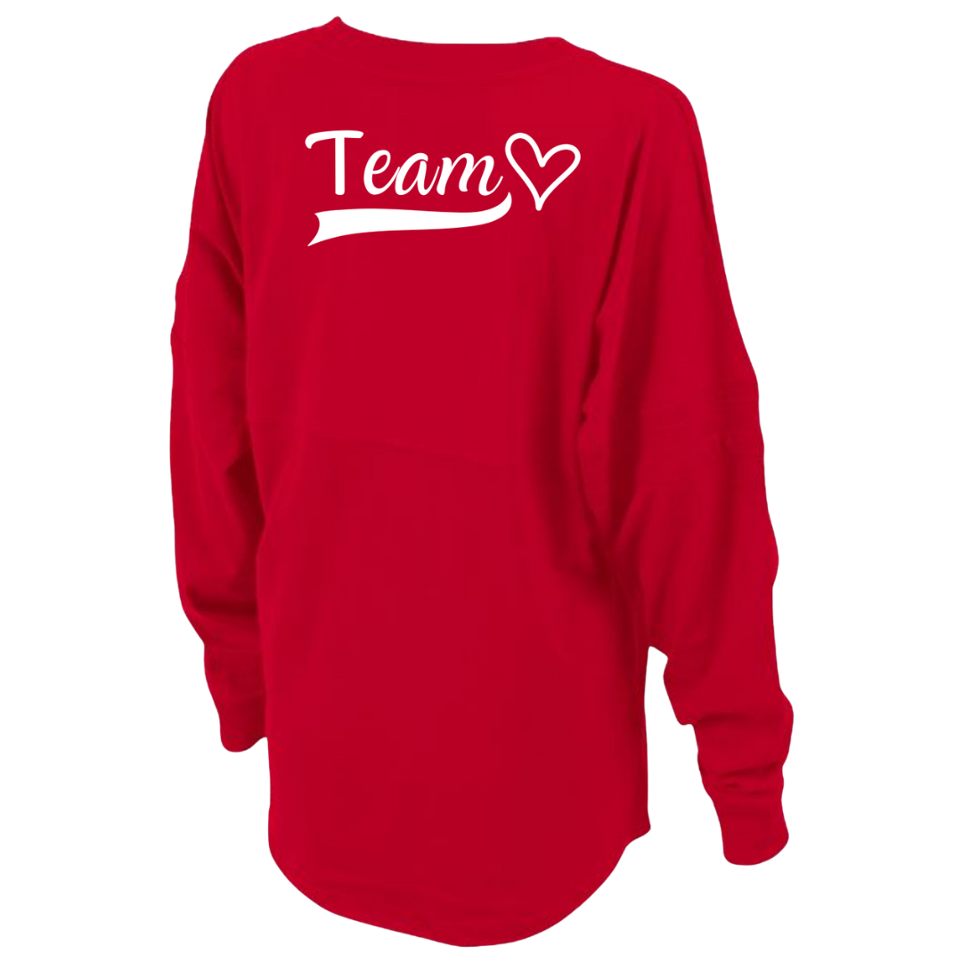 Join the American Heart Association Team in style with our oversized Glitter Team Heart Jersey! Glitter ink adds some fun and femininity to this comfy tee, perfect for game days or casual wear.