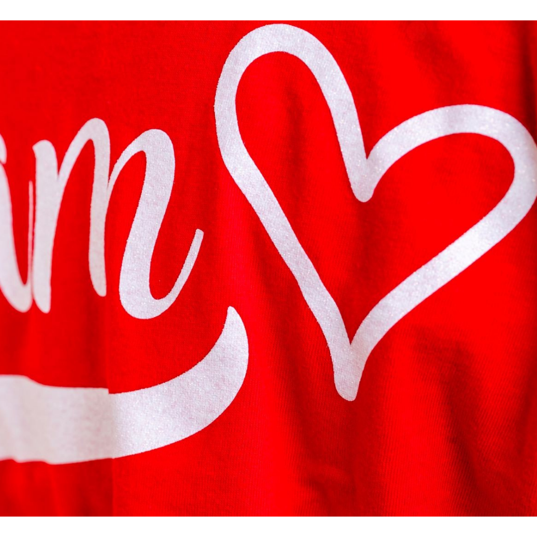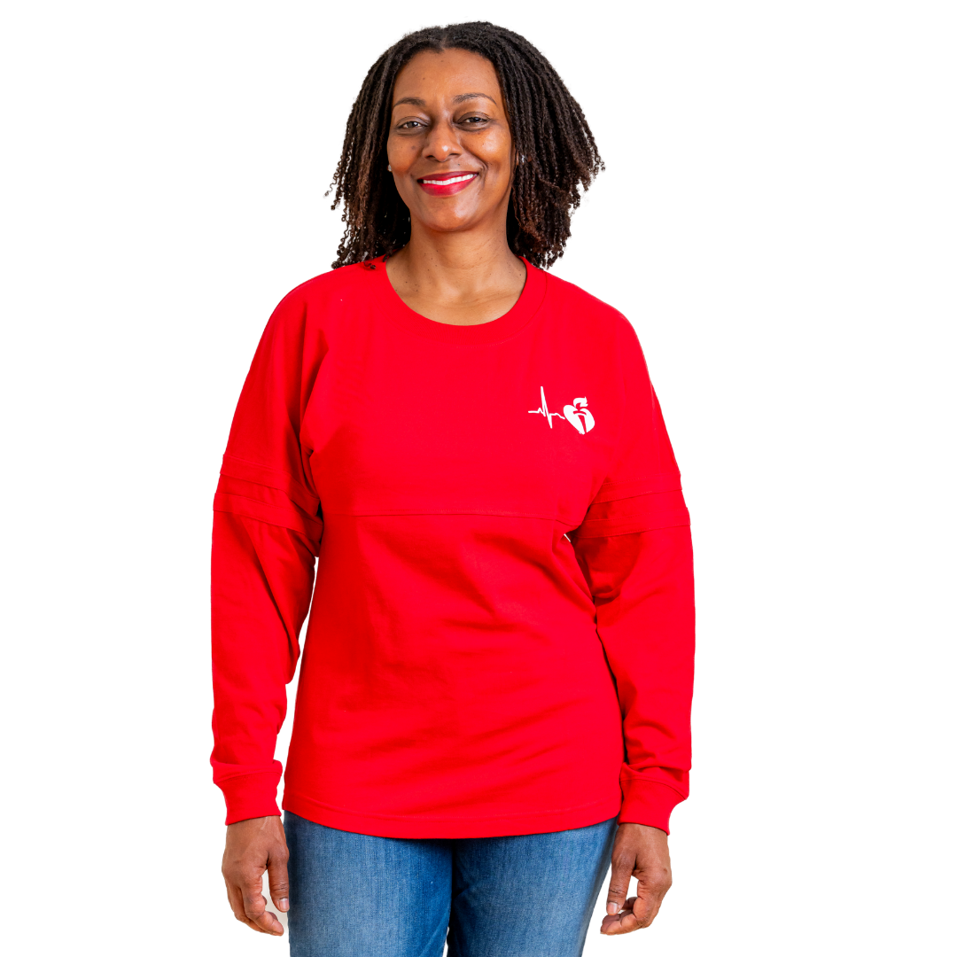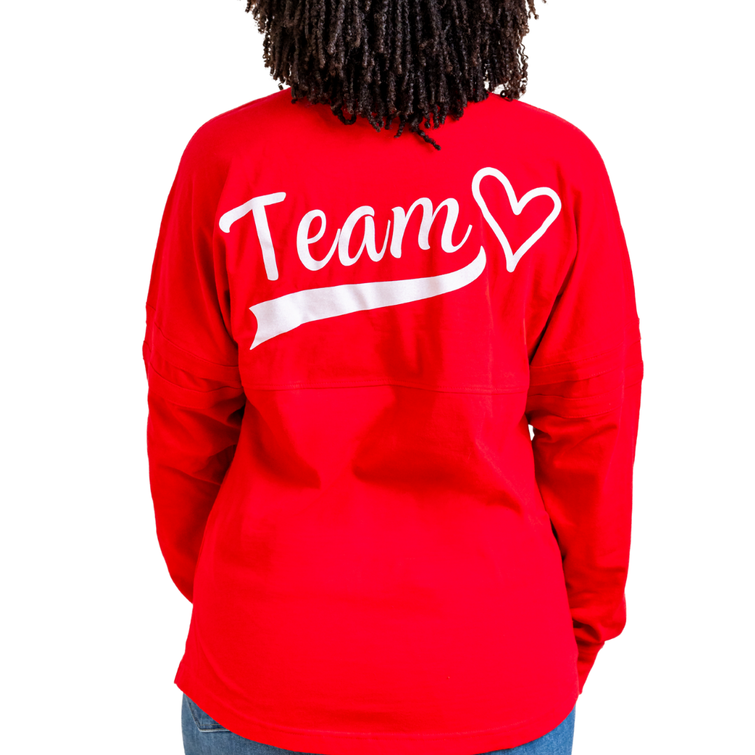 Join the American Heart Association Team in style with our oversized Glitter Team Heart Jersey! Glitter ink adds some fun and femininity to this comfy tee, perfect for game days or casual wear.