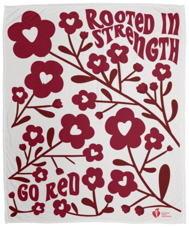 We are all Rooted in Strength. Wrap yourself in comfort and style with this incredibly soft and snuggly "Rooted In Strength" blanket. Measuring 50" x 60", it's perfect for staying cozy and supporting the Go Red cause.